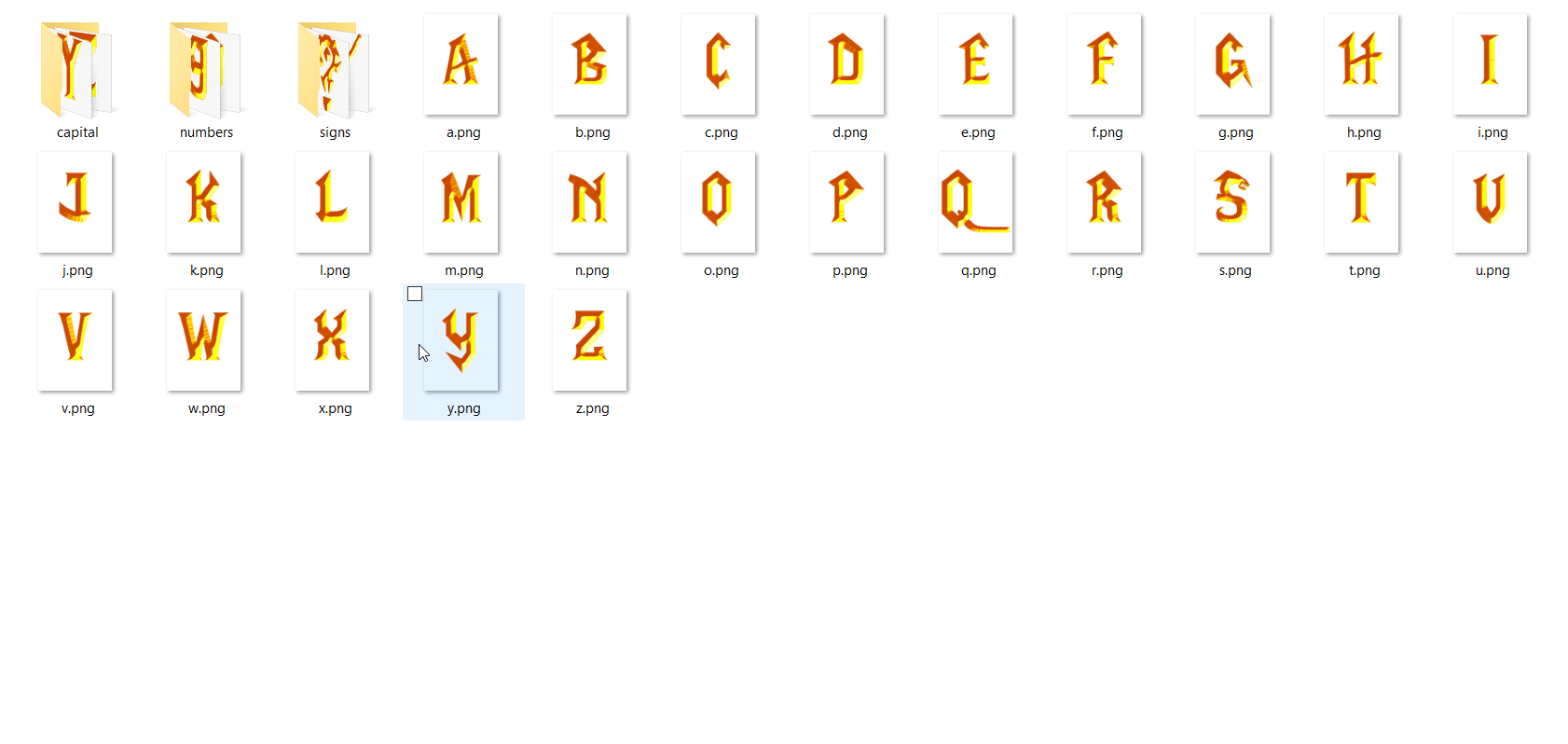 This is an asset pack consisting of individual images of alphabets in small and capital along with some numbers and symbols.